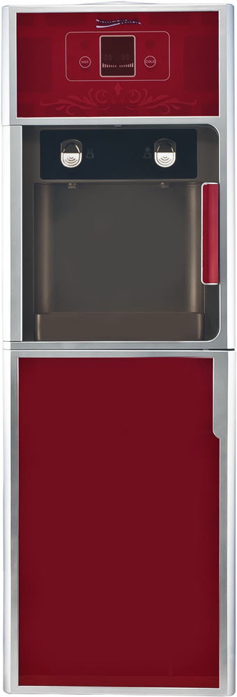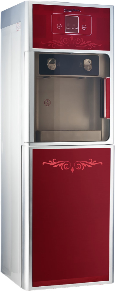 Большой напольный кулер Aqua Work SLR-76 с производительной компрессорной системой охлаждения воды (охлаждает не менее 2 литров в час до температуры не более 10 градусов) выделяется среди своих собратьев необычным утонченным дизайном. Витражная техника оформления фасадных частей аппарата с нанесенными на них узорами подчеркивает элегантность данной модели и придает ей некоторый французский шик.
