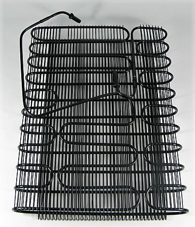 Решетка является задней стенкой кулера. Выполнена из полой стальной трубки. Покрашена черной краской. Являетя частью системы охлаждения кулера. В конденсаторе нагретый в результате сжатия хладагент остывает, отдавая тепло во внешнюю среду, и при этом конденсируется, то есть превращается в жидкость, поступающую в капилляр.