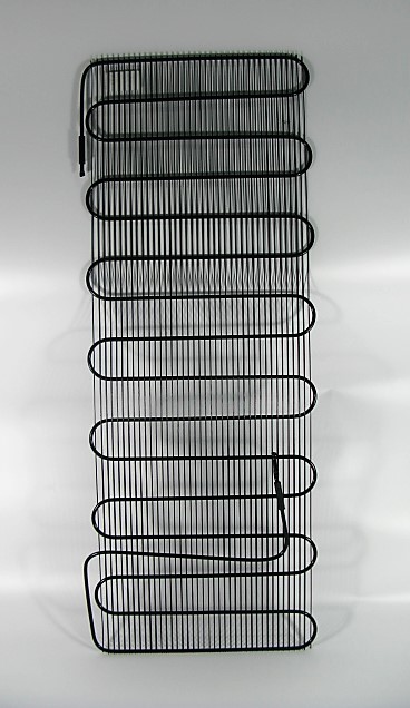 Решетка является задней стенкой кулера. Выполнена из полой стальной трубки. Покрашена черной краской. Являетя частью системы охлаждения кулера. В конденсаторе нагретый в результате сжатия хладагент остывает, отдавая тепло во внешнюю среду, и при этом конденсируется, то есть превращается в жидкость, поступающую в капилляр.