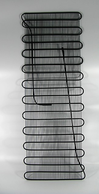 Решетка является задней стенкой кулера. Выполнена из полой стальной трубки. Покрашена черной краской. Являетя частью системы охлаждения кулера. В конденсаторе нагретый в результате сжатия хладагент остывает, отдавая тепло во внешнюю среду, и при этом конденсируется, то есть превращается в жидкость, поступающую в капилляр.