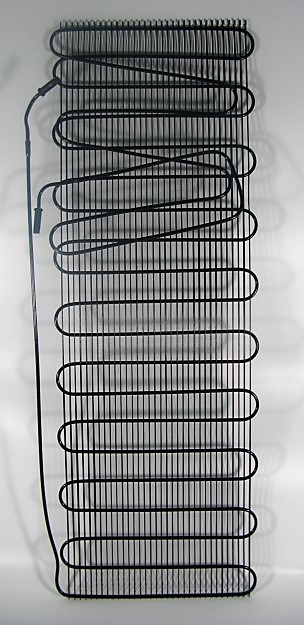 Решетка является задней стенкой кулера. Выполнена из полой стальной трубки. Покрашена черной краской. Являетя частью системы охлаждения кулера. В конденсаторе нагретый в результате сжатия хладагент остывает, отдавая тепло во внешнюю среду, и при этом конденсируется, то есть превращается в жидкость, поступающую в капилляр.