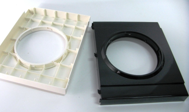 Верхняя крышка. Это часть корпуса кулера, является несущей панелью всей конструкции корпуса кулера. Устанавливается в верхней части кулера. В задней части крепится к боковым панелям (правой и левой) саморезами. Передняя часть крепится к верхней лицевой панели кулера на защелках. В центре верхней крышки предусмотрено отверстие для установки гнезда водоприема. На внутренней стороне предусмотрены отливы для крепления бака водоприема. Изготовлена из пищевого АБС-пластика – синтетического полимера, синтезируемого из трех составляющих: акрилонитрила, бутадиенового каучука и стирола. Он экологически безопасен и не придает воде никаких дополнительных запахов или вкусовых качеств.